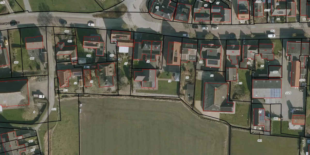 Het perceel waarop Doarpsstrjitte 33 staat heeft een oppervlakte van 800 m². Dit is een groot perceel. De perceeloppervlakte wordt geregistreerd door het Kadaster. Gedetailleerde informatie over de maten van dit perceel kunt u vinden in het rapport Kadastrale kaart met maatvoering van Doarpsstrjitte 33.