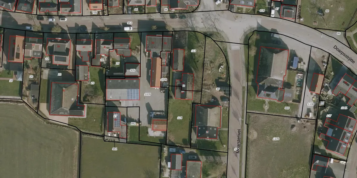 Gebruik de zoekbalk of klik op een perceel voor informatie over de adressen binnen dit perceel.