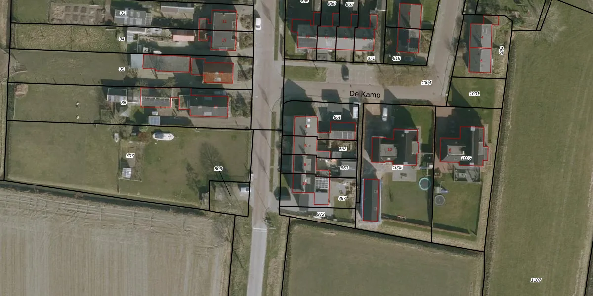 Gebruik de zoekbalk of klik op een perceel voor informatie over de adressen binnen dit perceel.