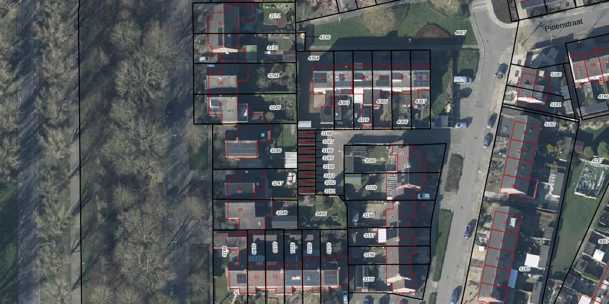 Gebruik de zoekbalk of klik op een perceel voor informatie over de adressen binnen dit perceel.