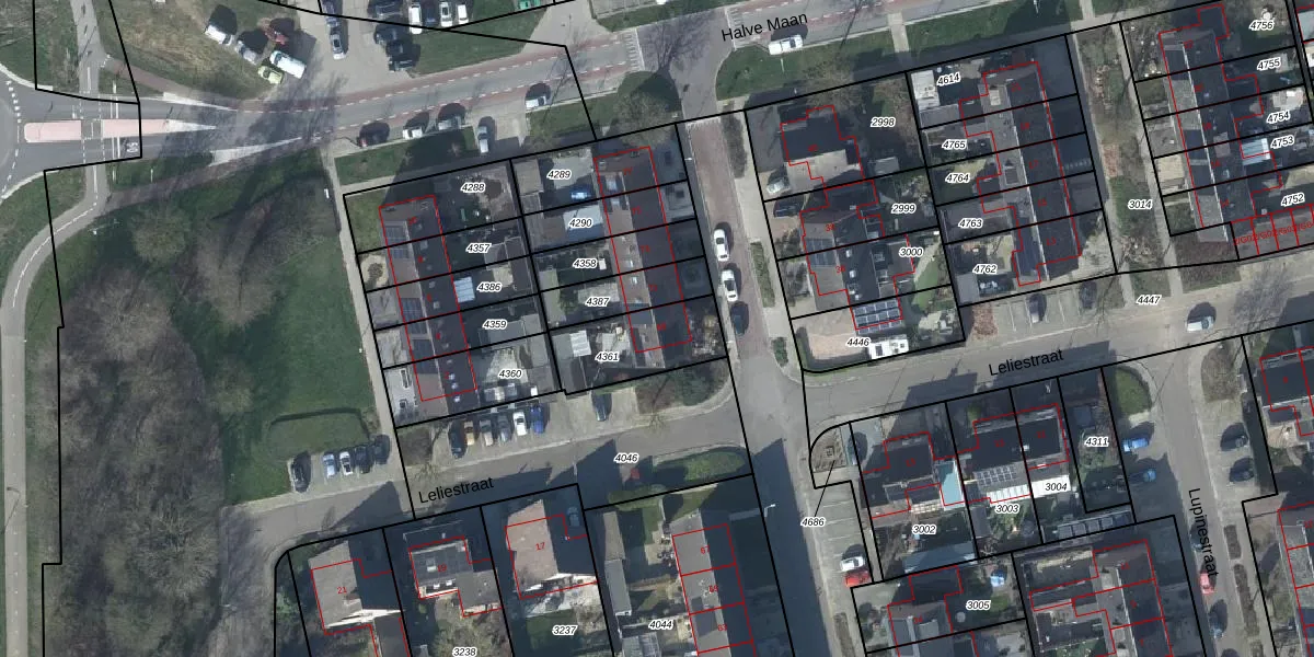 Gebruik de zoekbalk of klik op een perceel voor informatie over de adressen binnen dit perceel.