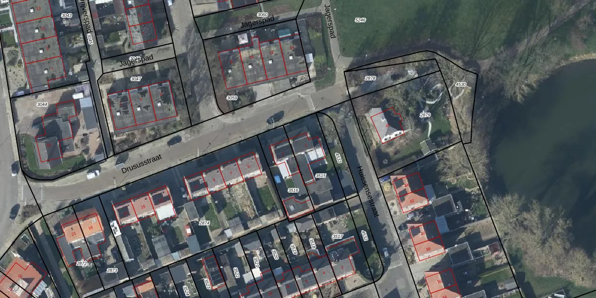 Het perceel waarop Drususstraat 1 staat heeft een oppervlakte van 355 m². Dit is een groot perceel. De perceeloppervlakte wordt geregistreerd door het Kadaster. Gedetailleerde informatie over de maten van dit perceel kunt u vinden in het rapport Kadastrale kaart met maatvoering van Drususstraat 1.