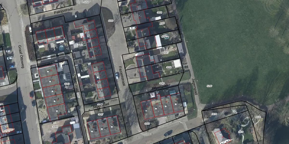 Gebruik de zoekbalk of klik op een perceel voor informatie over de adressen binnen dit perceel.