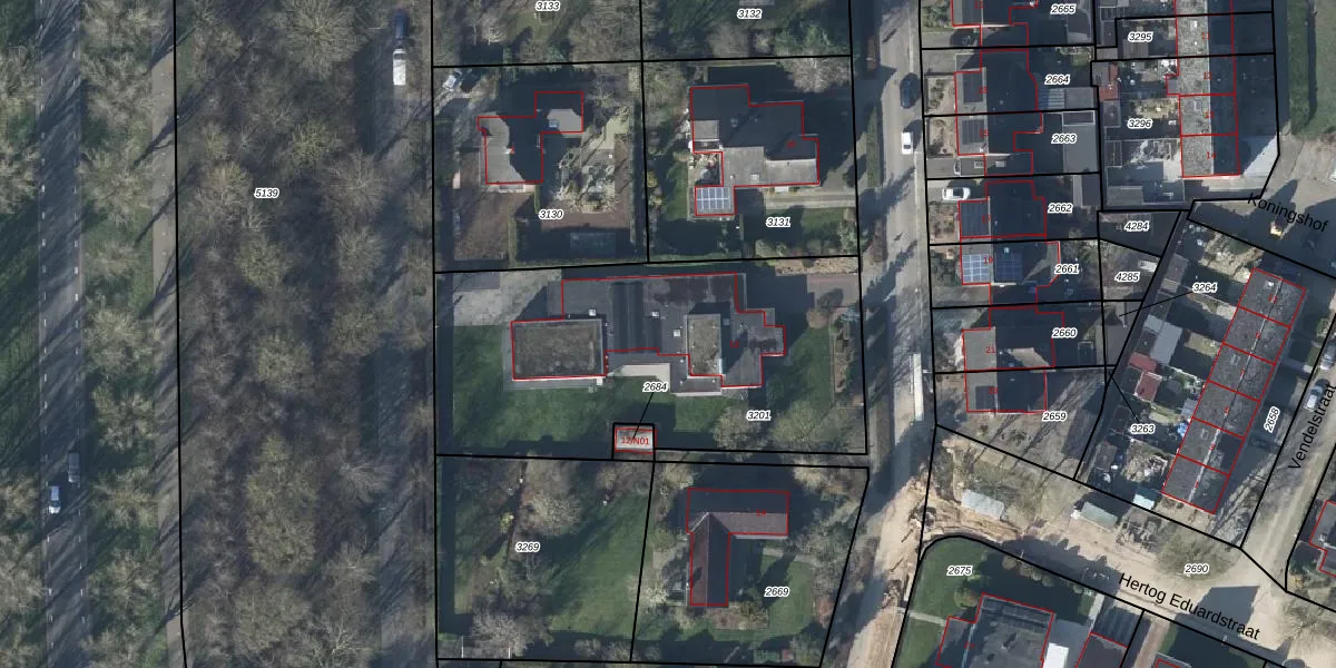 Gebruik de zoekbalk of klik op een perceel voor informatie over de adressen binnen dit perceel.