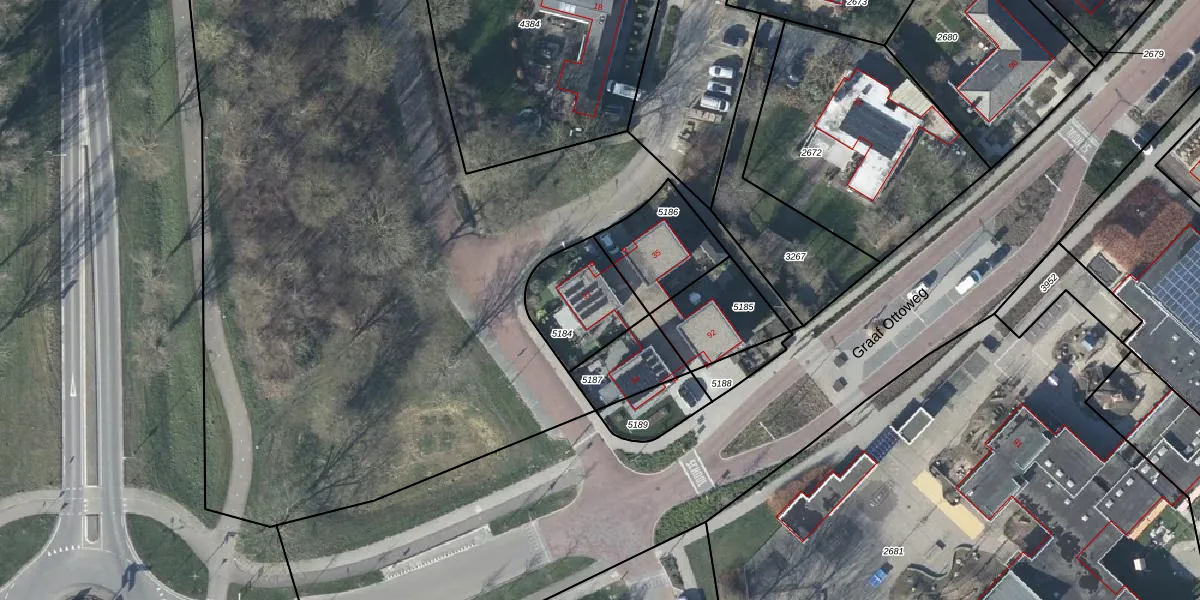 Het adres is gelegen op perceel 5184 in de sectie B en de kadastrale gemeente Lobith en Spijk. De kadastrale aanduiding is aldus LBH00-B-5184. De gemiddelde perceelgrootte in Lobith en Spijk is 4603,31 m². Dit perceel is kleiner: de perceeloppervlakte bedraagt 274 m². Het kleinste perceel in de kadastrale gemeente is 0 m² groot. De grootste perceeloppervlakte is 98,2 ha. Er zijn geen andere adressen aanwezig op het perceel. In de Basisregistratie Kadaster (BRK) werden de grenzen van het perceel geregistreerd op 25-02-2020.