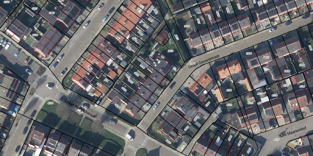Het perceel waarop Graaf Gerardstraat 30 staat heeft een oppervlakte van 181 m². Dit is een middelgroot perceel. De perceeloppervlakte wordt geregistreerd door het Kadaster. Gedetailleerde informatie over de maten van dit perceel kunt u vinden in het rapport Kadastrale kaart met maatvoering van Graaf Gerardstraat 30.