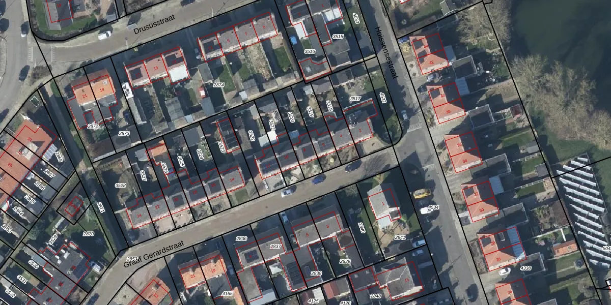 Gebruik de zoekbalk of klik op een perceel voor informatie over de adressen binnen dit perceel.
