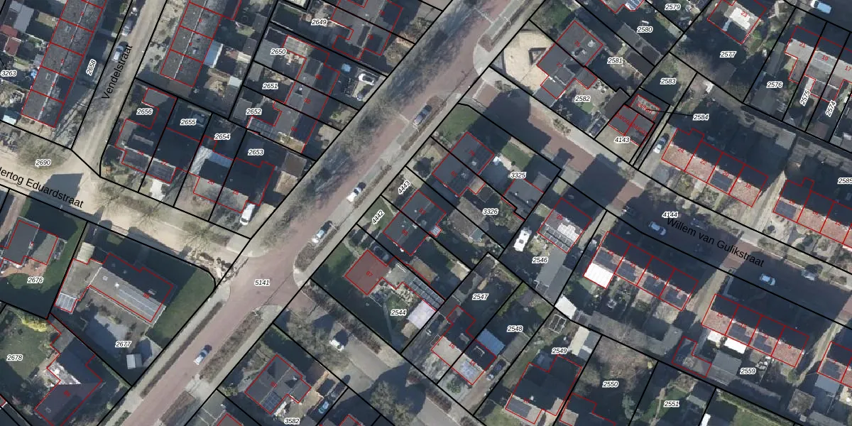 Gebruik de zoekbalk of klik op een perceel voor informatie over de adressen binnen dit perceel.