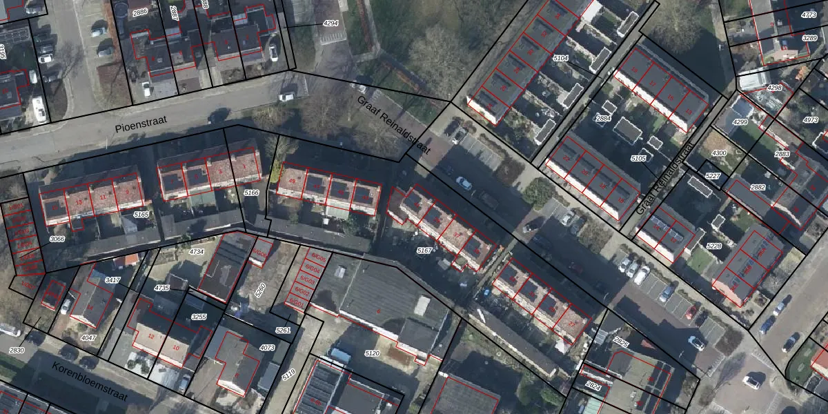 Het perceel waarop Graaf Reinaldstraat 41 staat heeft een oppervlakte van 2126 m². Dit is een zeer groot perceel. De perceeloppervlakte wordt geregistreerd door het Kadaster. Gedetailleerde informatie over de maten van dit perceel kunt u vinden in het rapport Kadastrale kaart met maatvoering van Graaf Reinaldstraat 41.