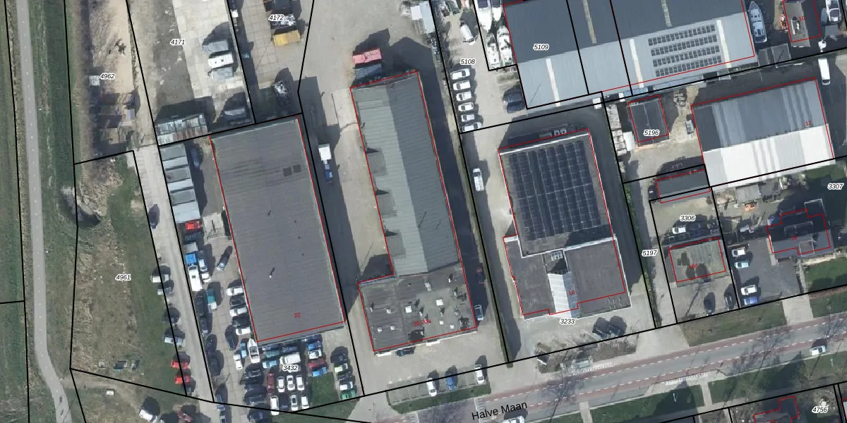 Het perceel waarop Halve Maan 20 staat heeft een oppervlakte van 3720 m². Dit is een zeer groot perceel. De perceeloppervlakte wordt geregistreerd door het Kadaster. Gedetailleerde informatie over de maten van dit perceel kunt u vinden in het rapport Kadastrale kaart met maatvoering van Halve Maan 20.
