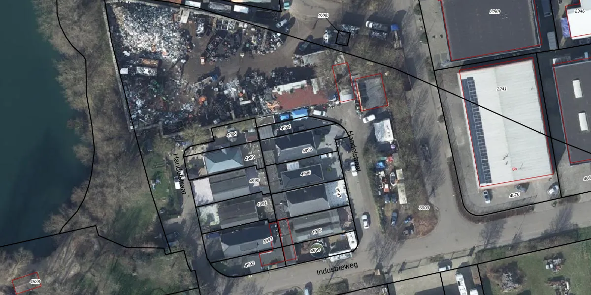 Handelstraat 10 is gelegen op kadastraal perceel LBH00B4995. Deze kadastrale aanduiding is uniek en wordt gebruikt door het Kadaster om eigendomsrechten en andere zakelijke rechten vast te leggen. Het perceel maakt onderdeel uit van de kadastrale gemeente Lobith en Spijk.