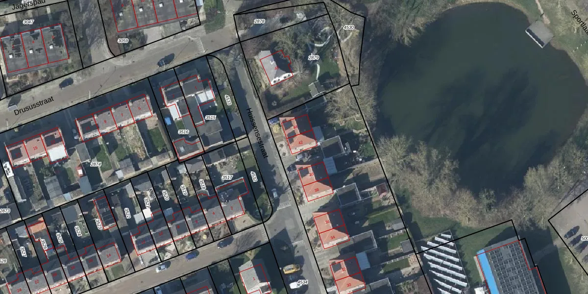 Het perceel waarop Huissensestraat 42 staat heeft een oppervlakte van 4496 m². Dit is een zeer groot perceel. De perceeloppervlakte wordt geregistreerd door het Kadaster. Gedetailleerde informatie over de maten van dit perceel kunt u vinden in het rapport Kadastrale kaart met maatvoering van Huissensestraat 42.
