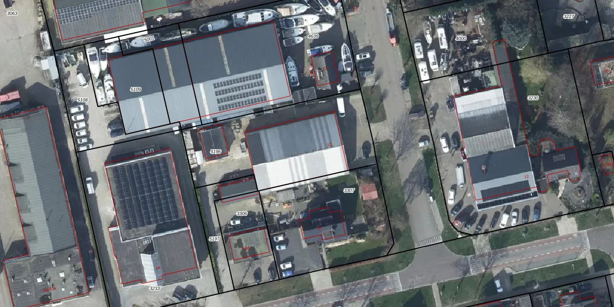 Het perceel waarop Industrieweg 12 staat heeft een oppervlakte van 1403 m². Dit is een zeer groot perceel. De perceeloppervlakte wordt geregistreerd door het Kadaster. Gedetailleerde informatie over de maten van dit perceel kunt u vinden in het rapport Kadastrale kaart met maatvoering van Industrieweg 12.