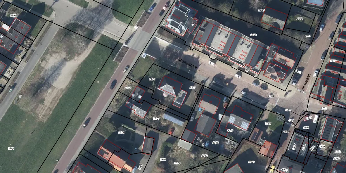 Het perceel waarop Komstraat 21 staat heeft een oppervlakte van 590 m². Dit is een groot perceel. De perceeloppervlakte wordt geregistreerd door het Kadaster. Gedetailleerde informatie over de maten van dit perceel kunt u vinden in het rapport Kadastrale kaart met maatvoering van Komstraat 21.