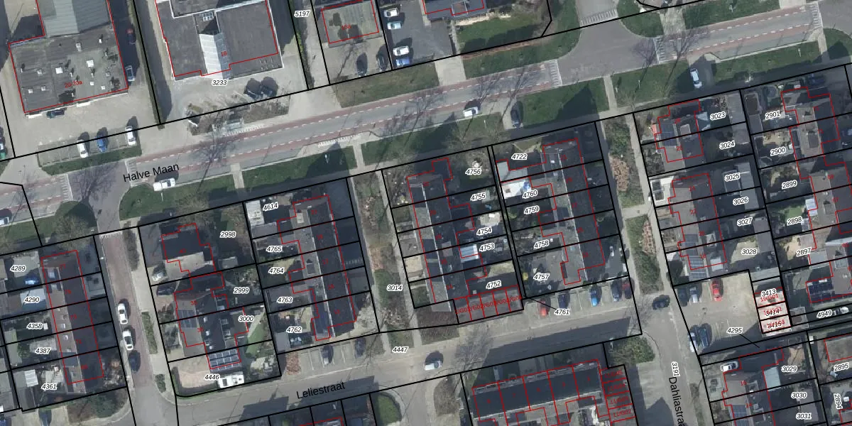 Gebruik de zoekbalk of klik op een perceel voor informatie over de adressen binnen dit perceel.