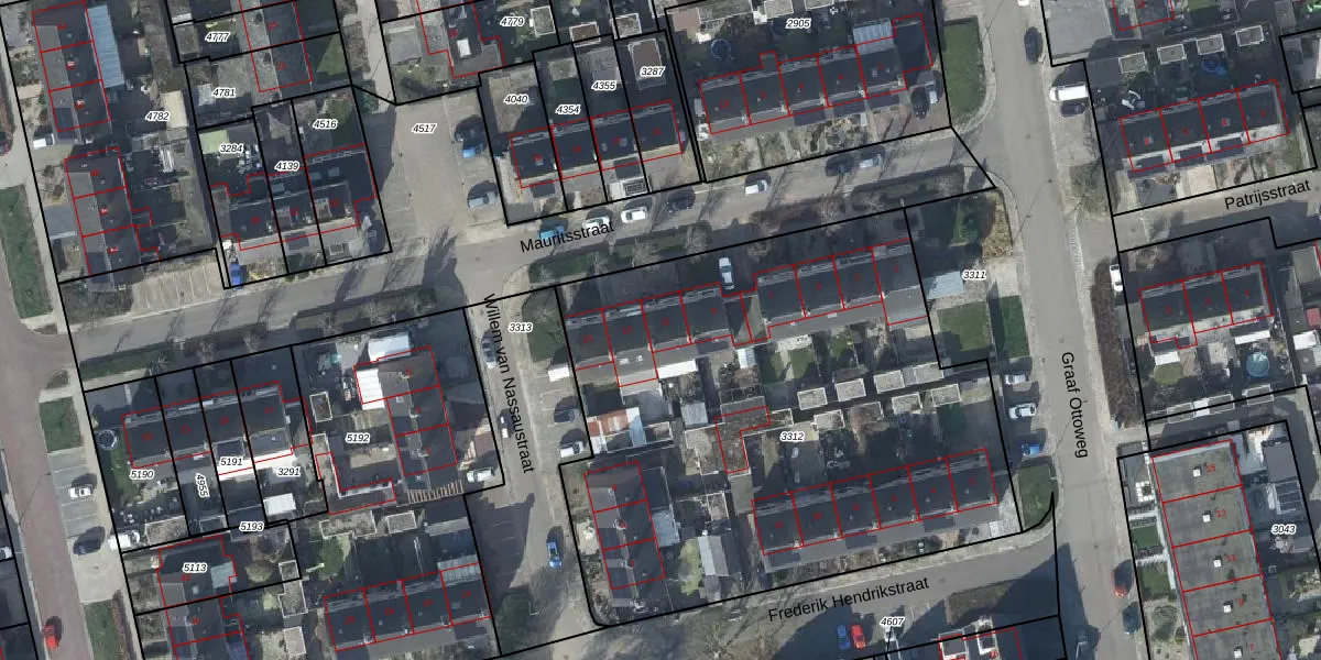 Het perceel waarop Mauritsstraat 11 staat heeft een oppervlakte van 3156 m². Dit is een zeer groot perceel. De perceeloppervlakte wordt geregistreerd door het Kadaster. Gedetailleerde informatie over de maten van dit perceel kunt u vinden in het rapport Kadastrale kaart met maatvoering van Mauritsstraat 11.