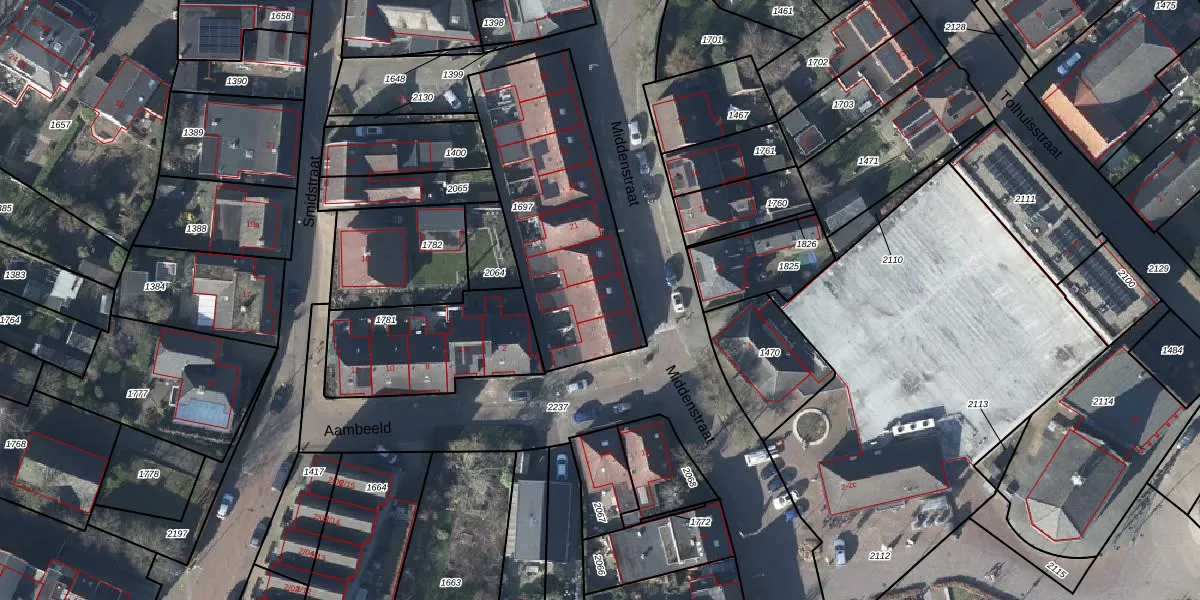 Het perceel waarop Middenstraat 17 staat heeft een oppervlakte van 893 m². Dit is een groot perceel. De perceeloppervlakte wordt geregistreerd door het Kadaster. Gedetailleerde informatie over de maten van dit perceel kunt u vinden in het rapport Kadastrale kaart met maatvoering van Middenstraat 17.