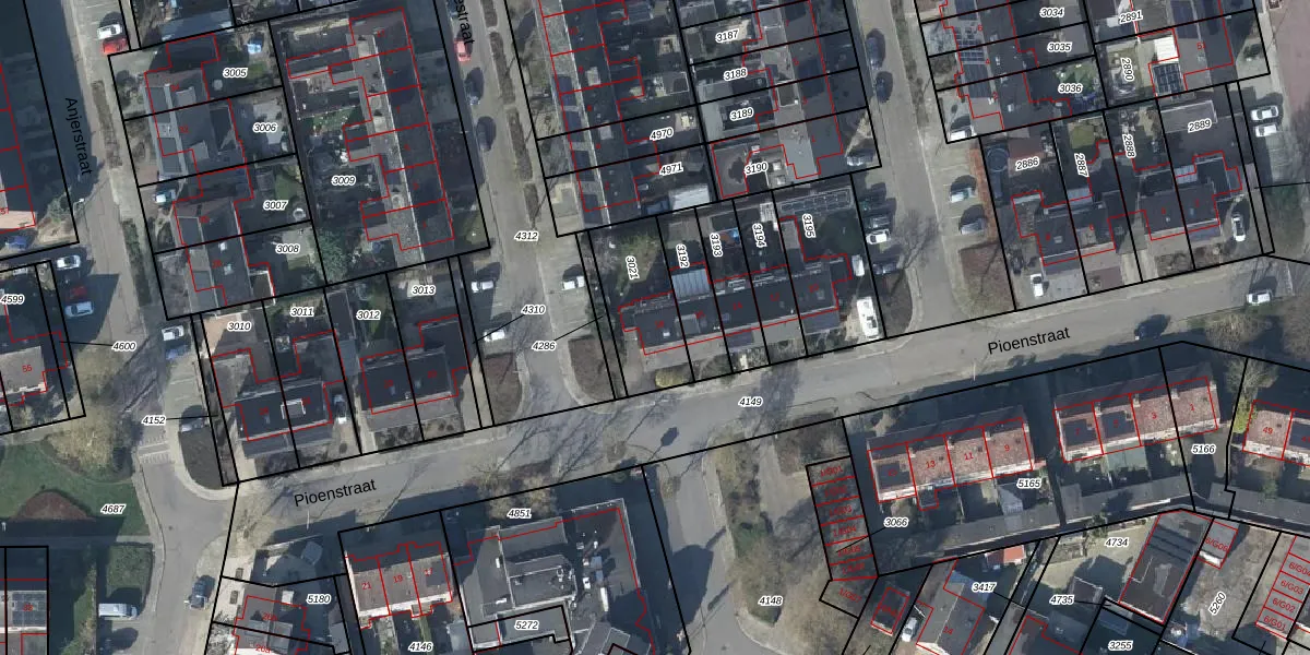 Gebruik de zoekbalk of klik op een perceel voor informatie over de adressen binnen dit perceel.