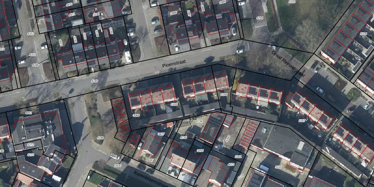 Het perceel waarop Pioenstraat 7 staat heeft een oppervlakte van 1235 m². Dit is een zeer groot perceel. De perceeloppervlakte wordt geregistreerd door het Kadaster. Gedetailleerde informatie over de maten van dit perceel kunt u vinden in het rapport Kadastrale kaart met maatvoering van Pioenstraat 7.