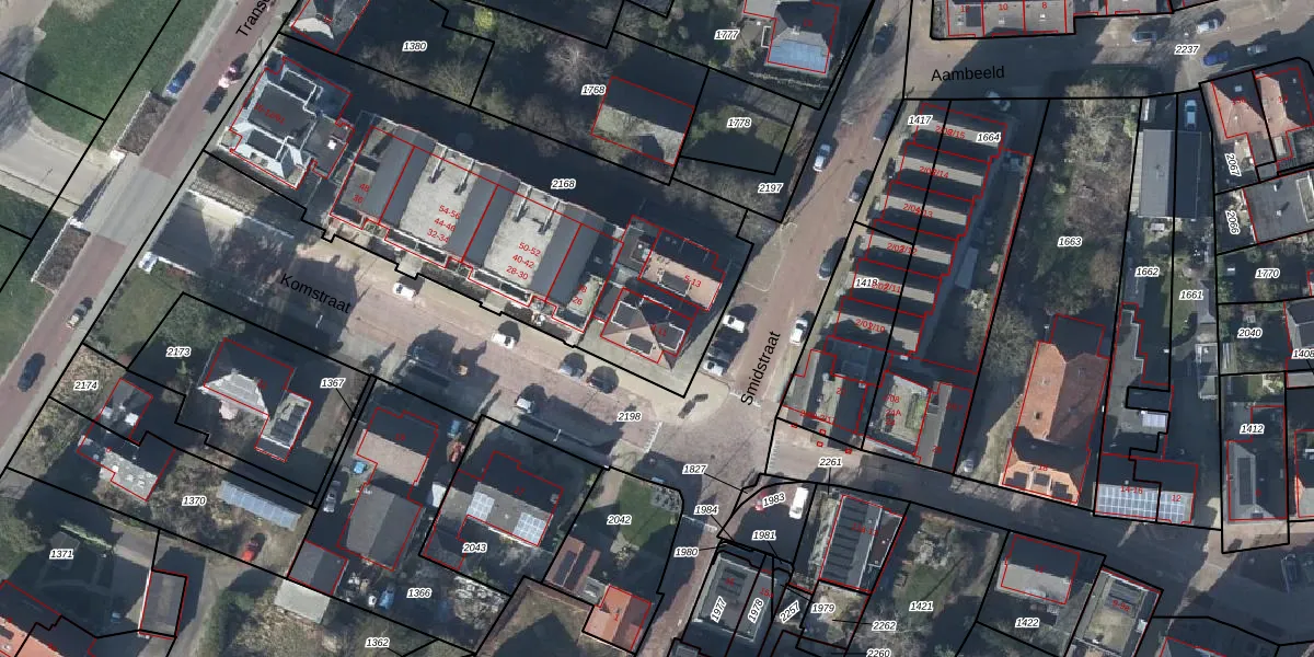 Het perceel waarop Smidstraat 7 staat heeft een oppervlakte van 2125 m². Dit is een zeer groot perceel. De perceeloppervlakte wordt geregistreerd door het Kadaster. Gedetailleerde informatie over de maten van dit perceel kunt u vinden in het rapport Kadastrale kaart met maatvoering van Smidstraat 7.