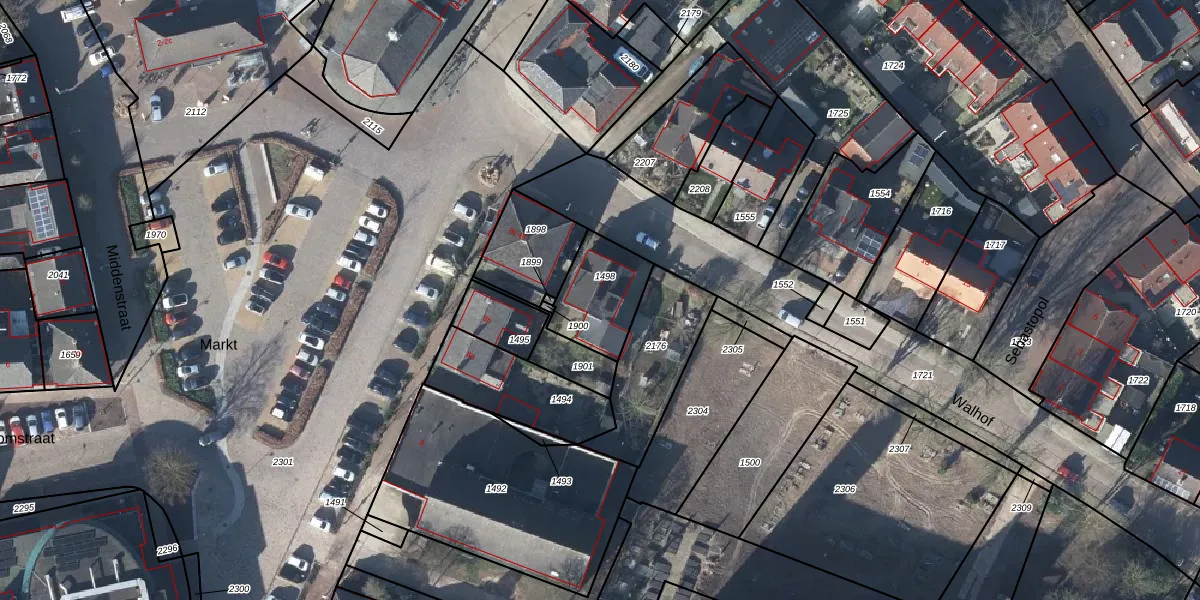 Het perceel waarop Walhof 2 staat heeft een oppervlakte van 230 m². Dit is een middelgroot perceel. De perceeloppervlakte wordt geregistreerd door het Kadaster. Gedetailleerde informatie over de maten van dit perceel kunt u vinden in het rapport Kadastrale kaart met maatvoering van Walhof 2.