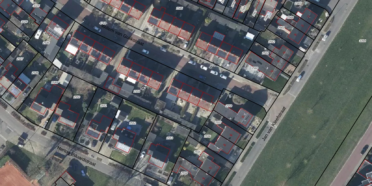 Willem van Gulikstraat 5 is gelegen op kadastraal perceel LBH00B2559. Deze kadastrale aanduiding is uniek en wordt gebruikt door het Kadaster om eigendomsrechten en andere zakelijke rechten vast te leggen. Het perceel maakt onderdeel uit van de kadastrale gemeente Lobith en Spijk.
