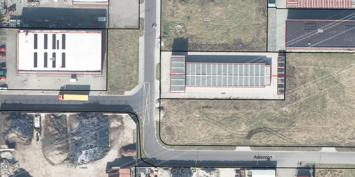 Het perceel waarop Aalsvoort 104-B6 staat heeft een oppervlakte van 1900 m². Dit is een zeer groot perceel. De perceeloppervlakte wordt geregistreerd door het Kadaster. Gedetailleerde informatie over de maten van dit perceel kunt u vinden in het rapport Kadastrale kaart met maatvoering van Aalsvoort 104-B6.