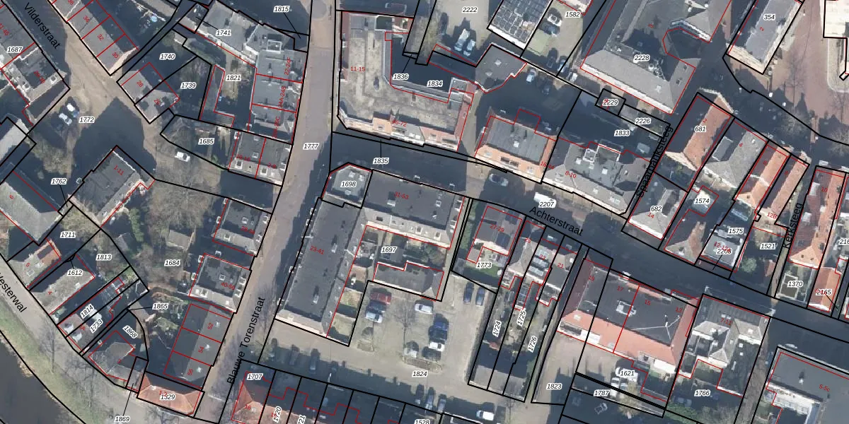 Het perceel waarop Achterstraat 41 staat heeft een oppervlakte van 1055 m². Dit is een zeer groot perceel. De perceeloppervlakte wordt geregistreerd door het Kadaster. Gedetailleerde informatie over de maten van dit perceel kunt u vinden in het rapport Kadastrale kaart met maatvoering van Achterstraat 41.