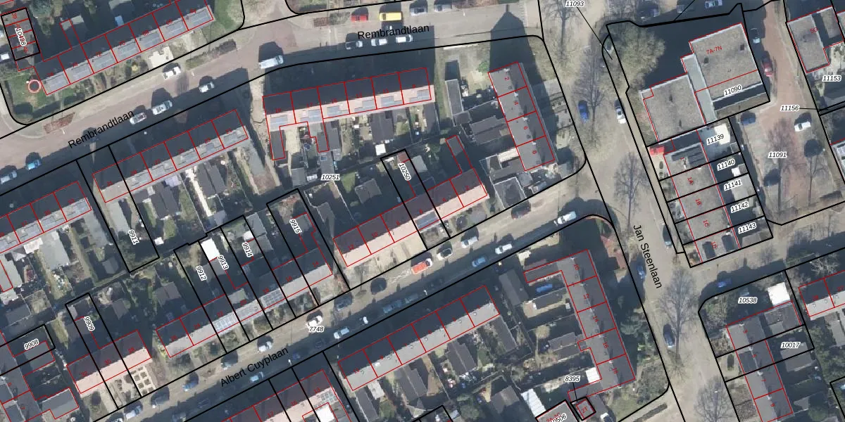 Gebruik de zoekbalk of klik op een perceel voor informatie over de adressen binnen dit perceel.
