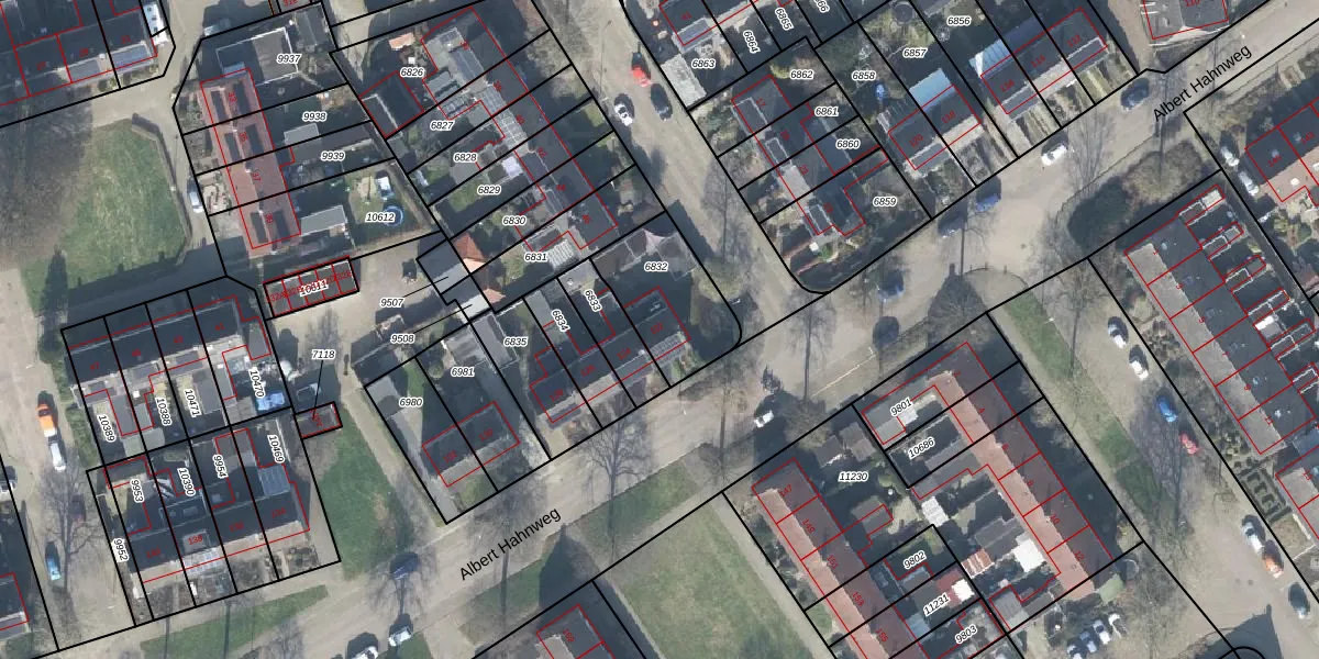 Het perceel waarop Albert Hahnweg 122 staat heeft een oppervlakte van 313 m². Dit is een groot perceel. De perceeloppervlakte wordt geregistreerd door het Kadaster. Gedetailleerde informatie over de maten van dit perceel kunt u vinden in het rapport Kadastrale kaart met maatvoering van Albert Hahnweg 122.