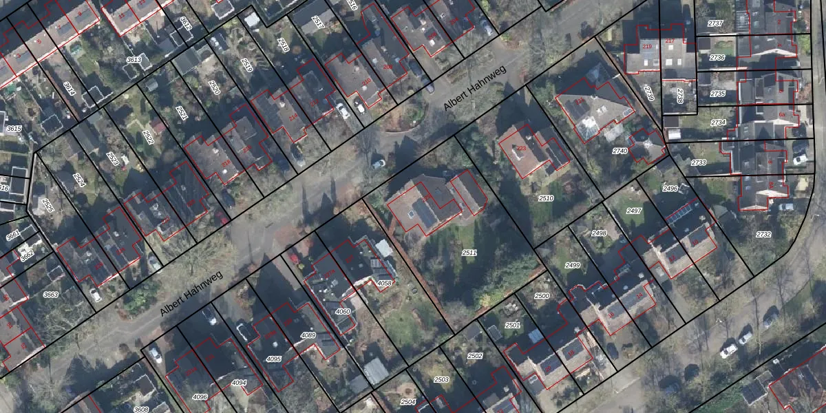Het perceel waarop Albert Hahnweg 225 staat heeft een oppervlakte van 1078 m². Dit is een zeer groot perceel. De perceeloppervlakte wordt geregistreerd door het Kadaster. Gedetailleerde informatie over de maten van dit perceel kunt u vinden in het rapport Kadastrale kaart met maatvoering van Albert Hahnweg 225.