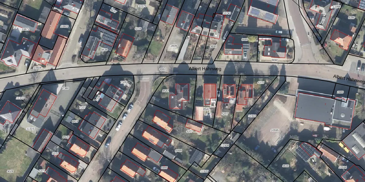 Het perceel waarop Albert Hahnweg 23 staat heeft een oppervlakte van 437 m². Dit is een groot perceel. De perceeloppervlakte wordt geregistreerd door het Kadaster. Gedetailleerde informatie over de maten van dit perceel kunt u vinden in het rapport Kadastrale kaart met maatvoering van Albert Hahnweg 23.
