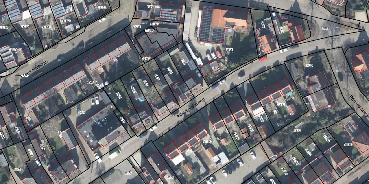 Gebruik de zoekbalk of klik op een perceel voor informatie over de adressen binnen dit perceel.