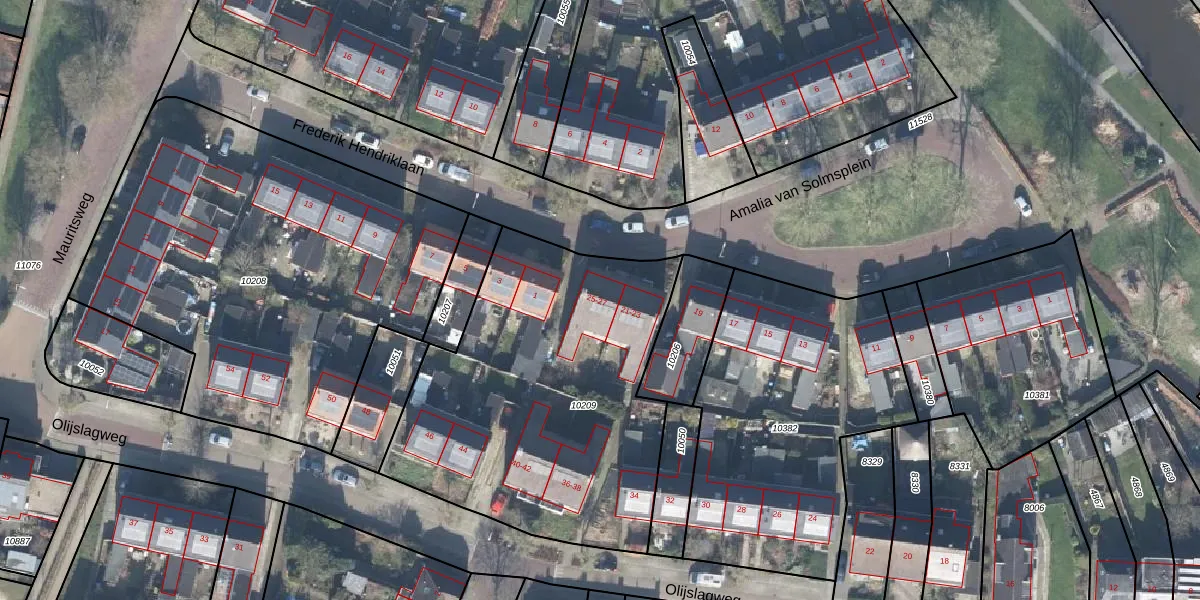 Het perceel waarop Amalia van Solmsplein 27 staat heeft een oppervlakte van 1800 m². Dit is een zeer groot perceel. De perceeloppervlakte wordt geregistreerd door het Kadaster. Gedetailleerde informatie over de maten van dit perceel kunt u vinden in het rapport Kadastrale kaart met maatvoering van Amalia van Solmsplein 27.