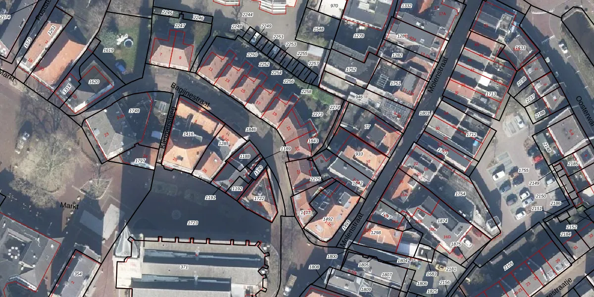 Het perceel waarop Bagijnestraat 23 staat heeft een oppervlakte van 975 m². Dit is een groot perceel. De perceeloppervlakte wordt geregistreerd door het Kadaster. Gedetailleerde informatie over de maten van dit perceel kunt u vinden in het rapport Kadastrale kaart met maatvoering van Bagijnestraat 23.