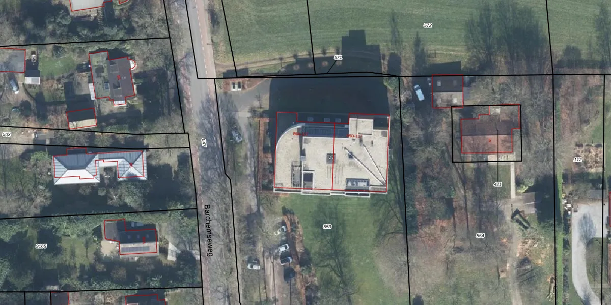 Het perceel waarop Barchemseweg 107 staat heeft een oppervlakte van 5035 m². Dit is een zeer groot perceel. De perceeloppervlakte wordt geregistreerd door het Kadaster. Gedetailleerde informatie over de maten van dit perceel kunt u vinden in het rapport Kadastrale kaart met maatvoering van Barchemseweg 107.