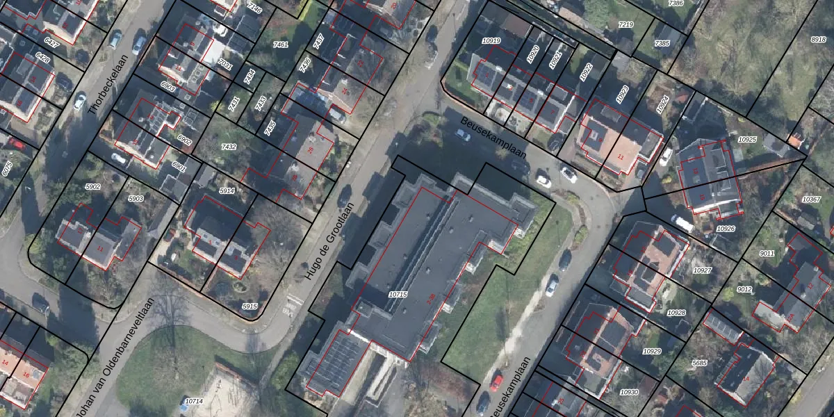 Het perceel waarop Beusekamplaan 32 staat heeft een oppervlakte van 2685 m². Dit is een zeer groot perceel. De perceeloppervlakte wordt geregistreerd door het Kadaster. Gedetailleerde informatie over de maten van dit perceel kunt u vinden in het rapport Kadastrale kaart met maatvoering van Beusekamplaan 32.