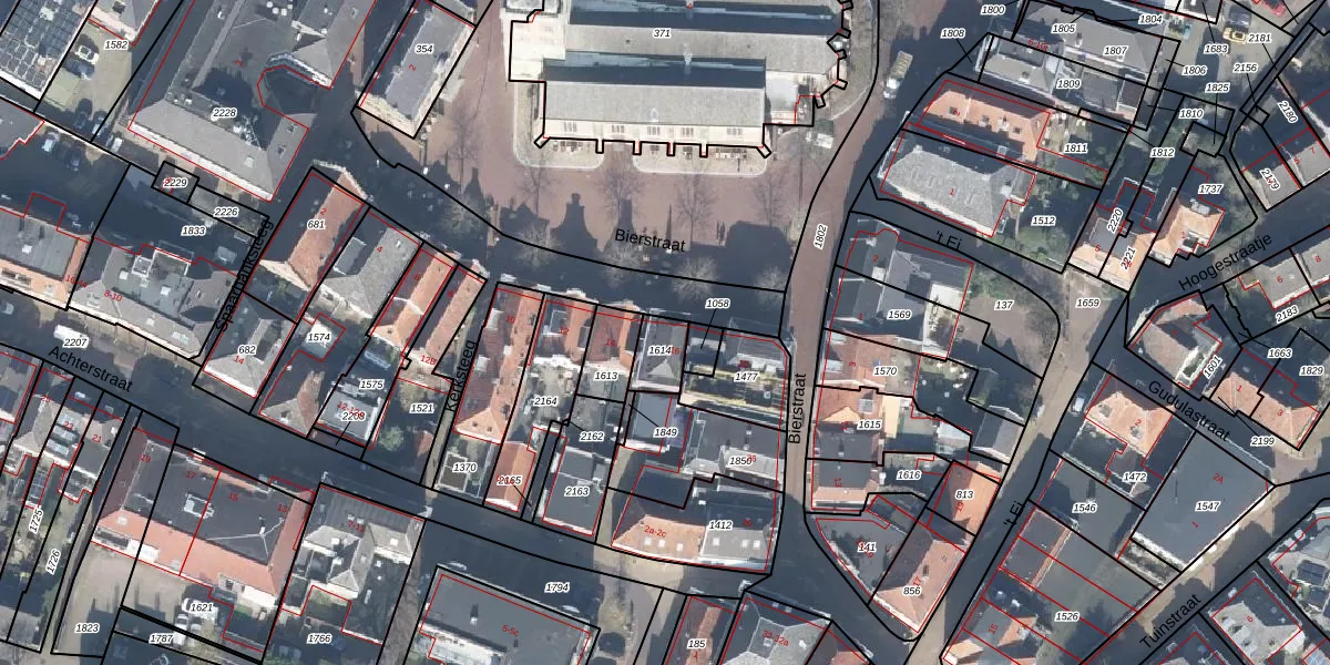 Het perceel waarop Bierstraat 16 staat heeft een oppervlakte van 82 m². Dit is een klein perceel. De perceeloppervlakte wordt geregistreerd door het Kadaster. Gedetailleerde informatie over de maten van dit perceel kunt u vinden in het rapport Kadastrale kaart met maatvoering van Bierstraat 16.