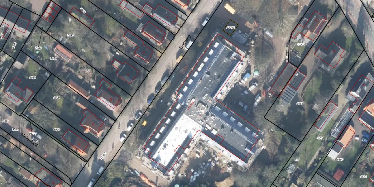 Het perceel waarop Bosweg 1-K001 staat heeft een oppervlakte van 1,6 ha. Dit is een zeer groot perceel. De perceeloppervlakte wordt geregistreerd door het Kadaster. Gedetailleerde informatie over de maten van dit perceel kunt u vinden in het rapport Kadastrale kaart met maatvoering van Bosweg 1-K001.
