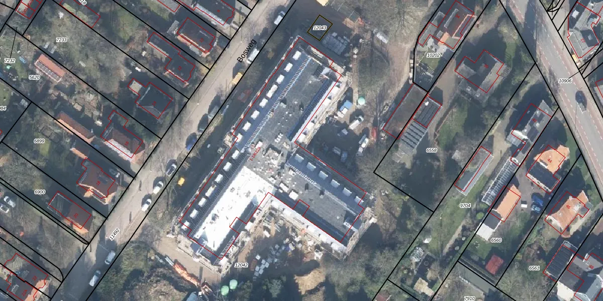 Het perceel waarop Bosweg 1-K011 staat heeft een oppervlakte van 1,6 ha. Dit is een zeer groot perceel. De perceeloppervlakte wordt geregistreerd door het Kadaster. Gedetailleerde informatie over de maten van dit perceel kunt u vinden in het rapport Kadastrale kaart met maatvoering van Bosweg 1-K011.