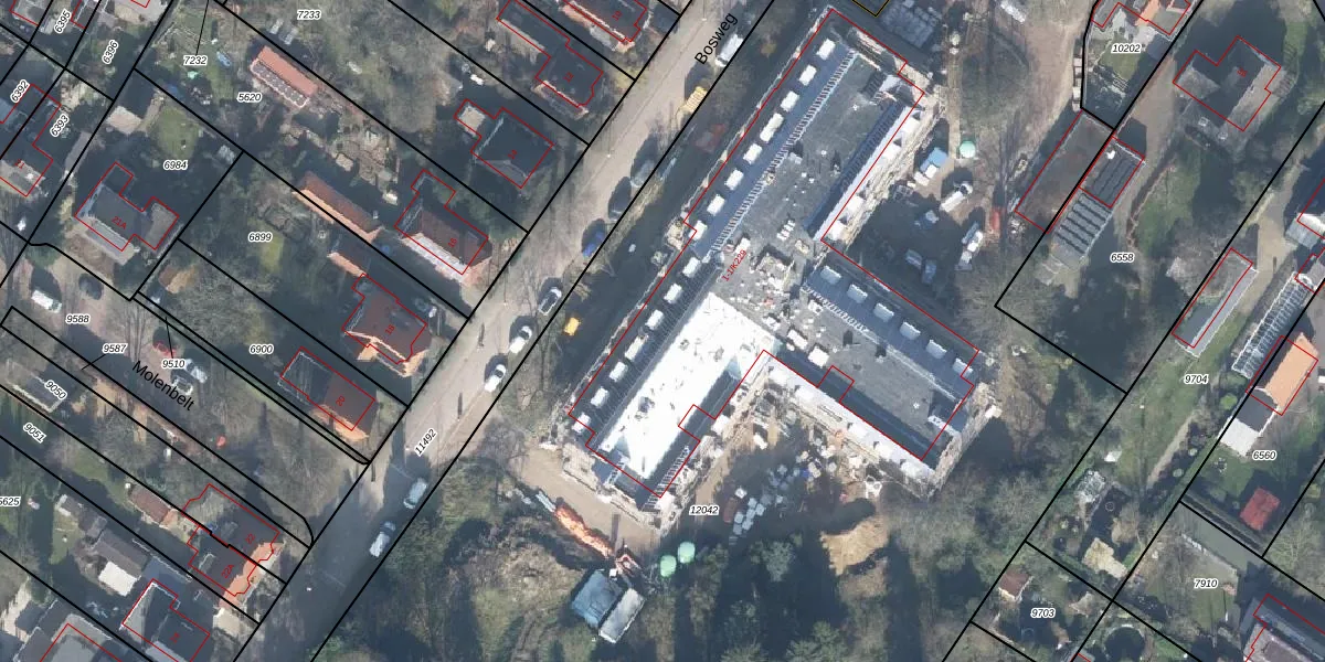 Het perceel waarop Bosweg 1-K105 staat heeft een oppervlakte van 1,6 ha. Dit is een zeer groot perceel. De perceeloppervlakte wordt geregistreerd door het Kadaster. Gedetailleerde informatie over de maten van dit perceel kunt u vinden in het rapport Kadastrale kaart met maatvoering van Bosweg 1-K105.