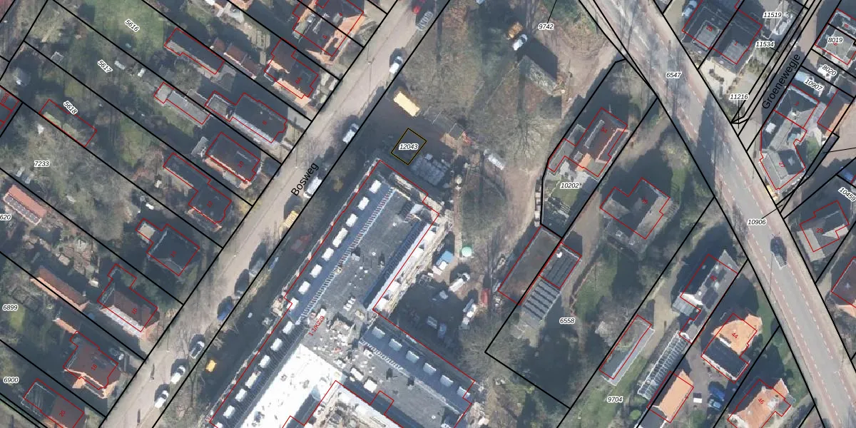 Het perceel waarop Bosweg 1-K113 staat heeft een oppervlakte van 1,6 ha. Dit is een zeer groot perceel. De perceeloppervlakte wordt geregistreerd door het Kadaster. Gedetailleerde informatie over de maten van dit perceel kunt u vinden in het rapport Kadastrale kaart met maatvoering van Bosweg 1-K113.