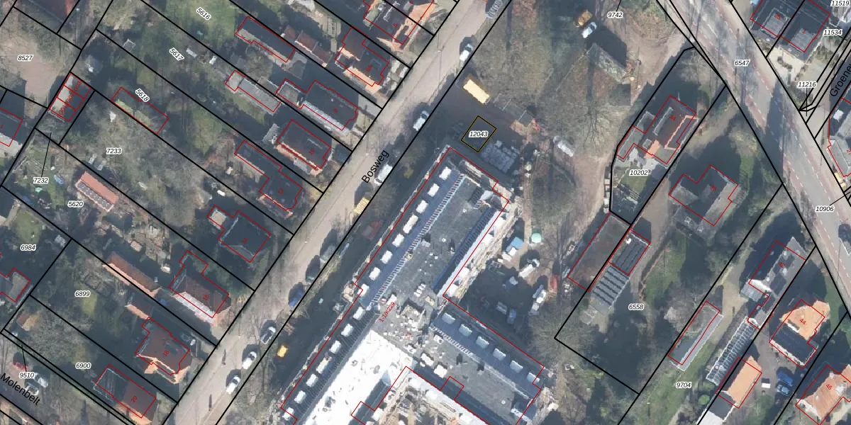 Het perceel waarop Bosweg 1-K118 staat heeft een oppervlakte van 1,6 ha. Dit is een zeer groot perceel. De perceeloppervlakte wordt geregistreerd door het Kadaster. Gedetailleerde informatie over de maten van dit perceel kunt u vinden in het rapport Kadastrale kaart met maatvoering van Bosweg 1-K118.