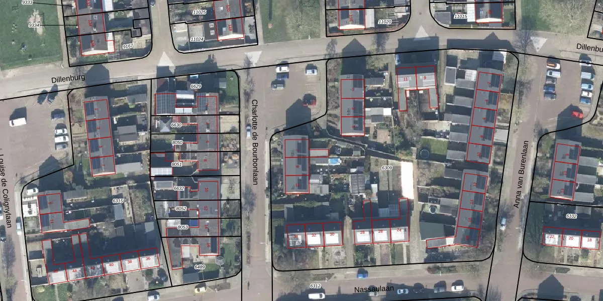 Het perceel waarop Charlotte de Bourbonlaan 7 staat heeft een oppervlakte van 5030 m². Dit is een zeer groot perceel. De perceeloppervlakte wordt geregistreerd door het Kadaster. Gedetailleerde informatie over de maten van dit perceel kunt u vinden in het rapport Kadastrale kaart met maatvoering van Charlotte de Bourbonlaan 7.