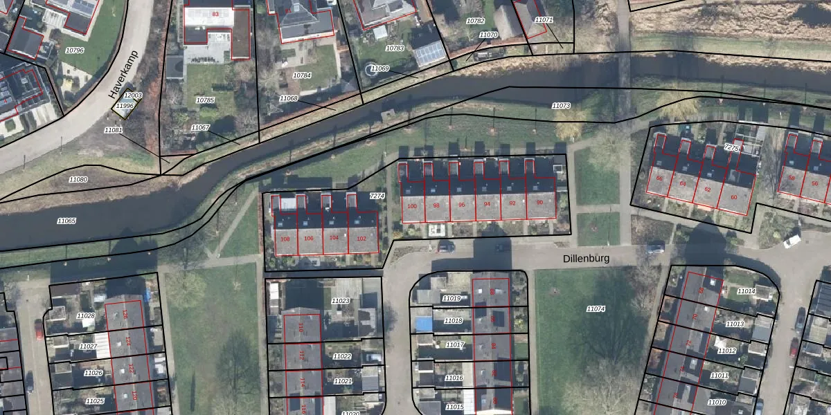 Dillenburg 100 is gelegen op kadastraal perceel LCM00B7274. Deze kadastrale aanduiding is uniek en wordt gebruikt door het Kadaster om eigendomsrechten en andere zakelijke rechten vast te leggen. Het perceel maakt onderdeel uit van de kadastrale gemeente Lochem.