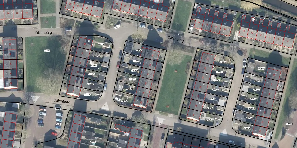 Het perceel waarop Dillenburg 42 staat heeft een oppervlakte van 182 m². Dit is een middelgroot perceel. De perceeloppervlakte wordt geregistreerd door het Kadaster. Gedetailleerde informatie over de maten van dit perceel kunt u vinden in het rapport Kadastrale kaart met maatvoering van Dillenburg 42.