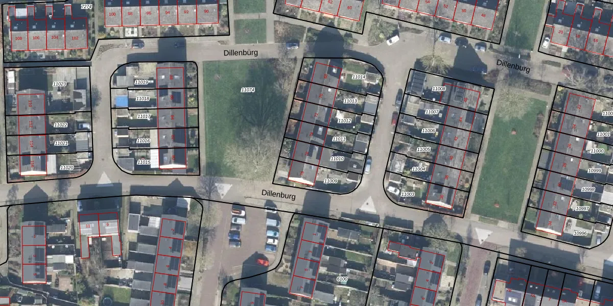 Gebruik de zoekbalk of klik op een perceel voor informatie over de adressen binnen dit perceel.
