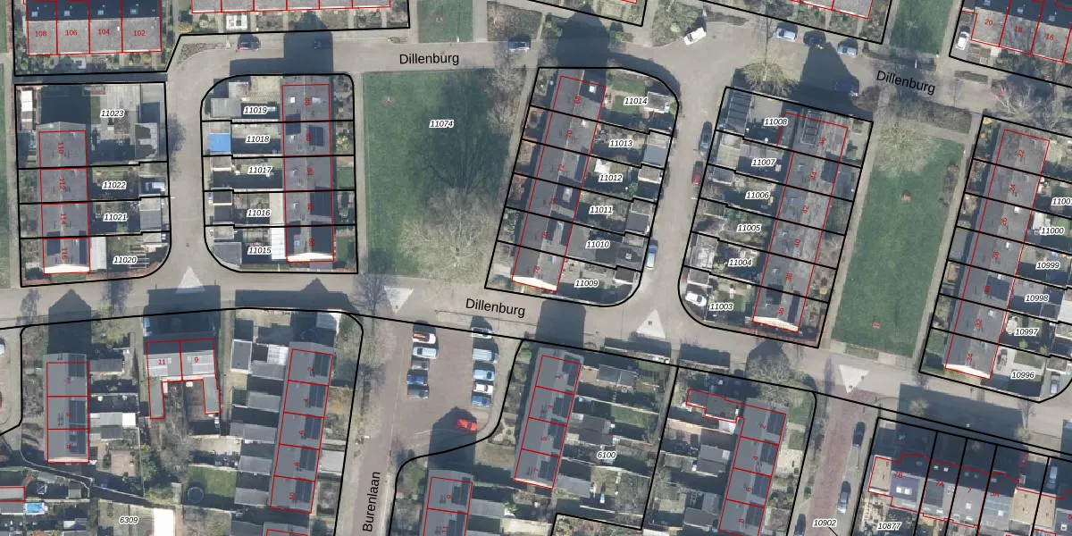 Gebruik de zoekbalk of klik op een perceel voor informatie over de adressen binnen dit perceel.