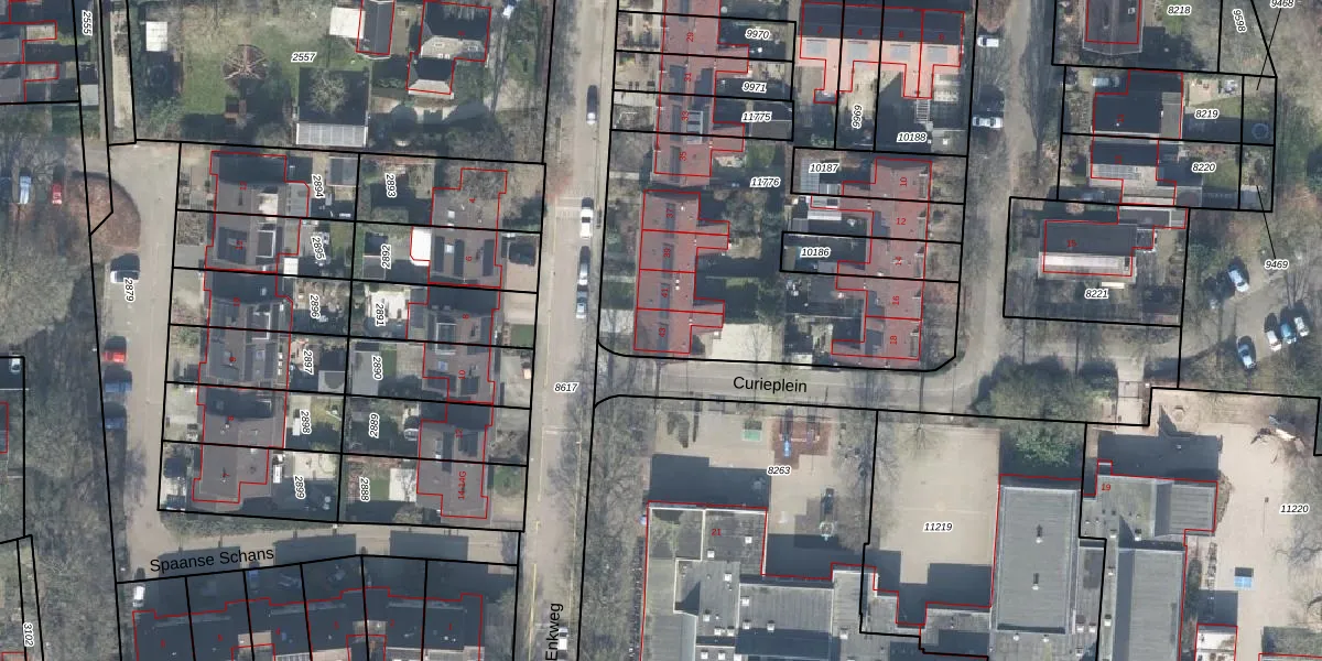 Het perceel waarop Enkweg 43 staat heeft een oppervlakte van 1815 m². Dit is een zeer groot perceel. De perceeloppervlakte wordt geregistreerd door het Kadaster. Gedetailleerde informatie over de maten van dit perceel kunt u vinden in het rapport Kadastrale kaart met maatvoering van Enkweg 43.