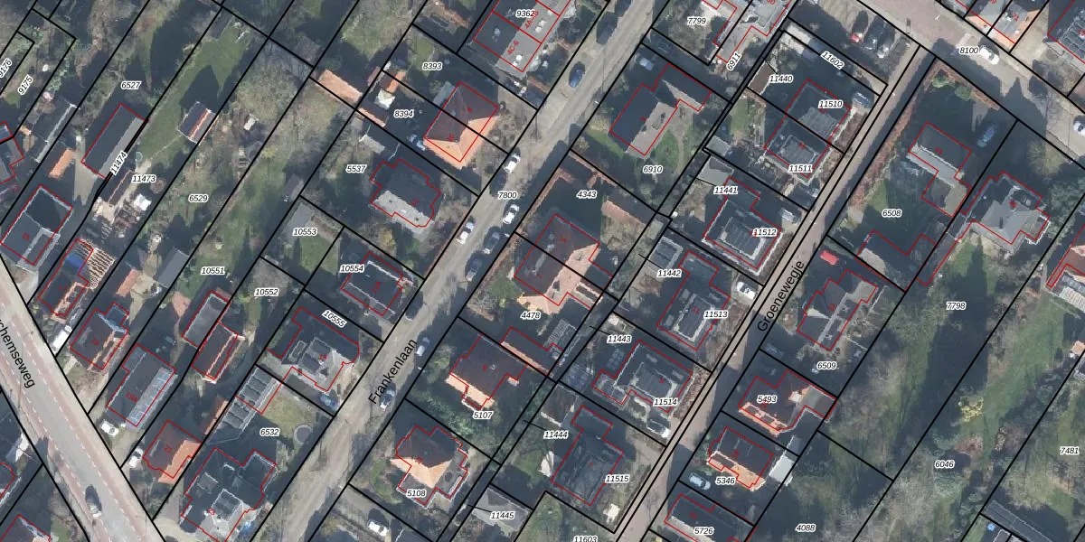 Het perceel waarop Frankenlaan 7 staat heeft een oppervlakte van 355 m². Dit is een groot perceel. De perceeloppervlakte wordt geregistreerd door het Kadaster. Gedetailleerde informatie over de maten van dit perceel kunt u vinden in het rapport Kadastrale kaart met maatvoering van Frankenlaan 7.